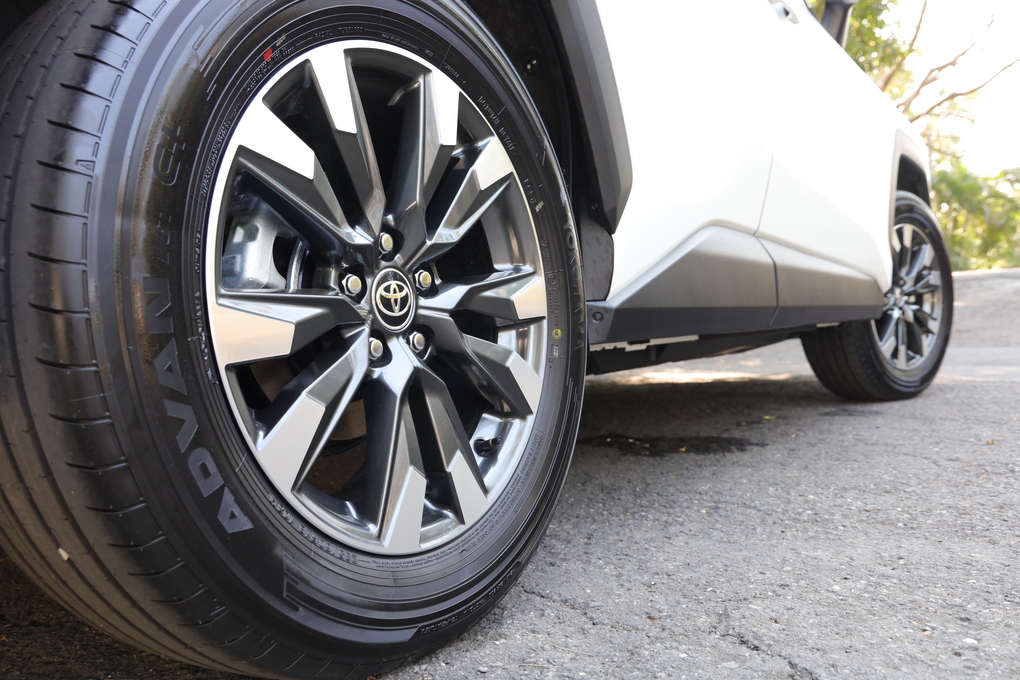 兩者輪圈款式雖不相同,但輪胎尺寸與廠牌都是橫濱18吋胎。不過2.5 Hybrid 旗艦版輪拱護板比較貼合鈑件,ADVENTURE版則有明顯的外凸。官方數據證實,ADVENTURE輪胎比旗艦版外推了10mm,若是GR-SPORT輪距則外推20 mm。